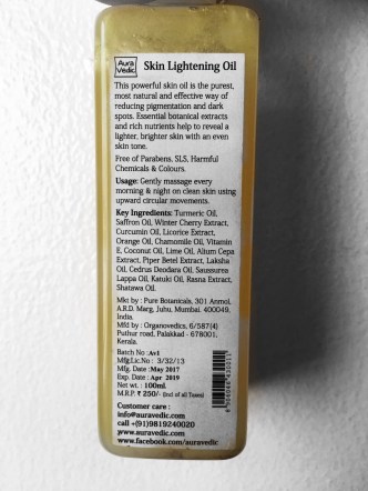 Few weeks back I received this Skin lightning oil from auravedic for review,